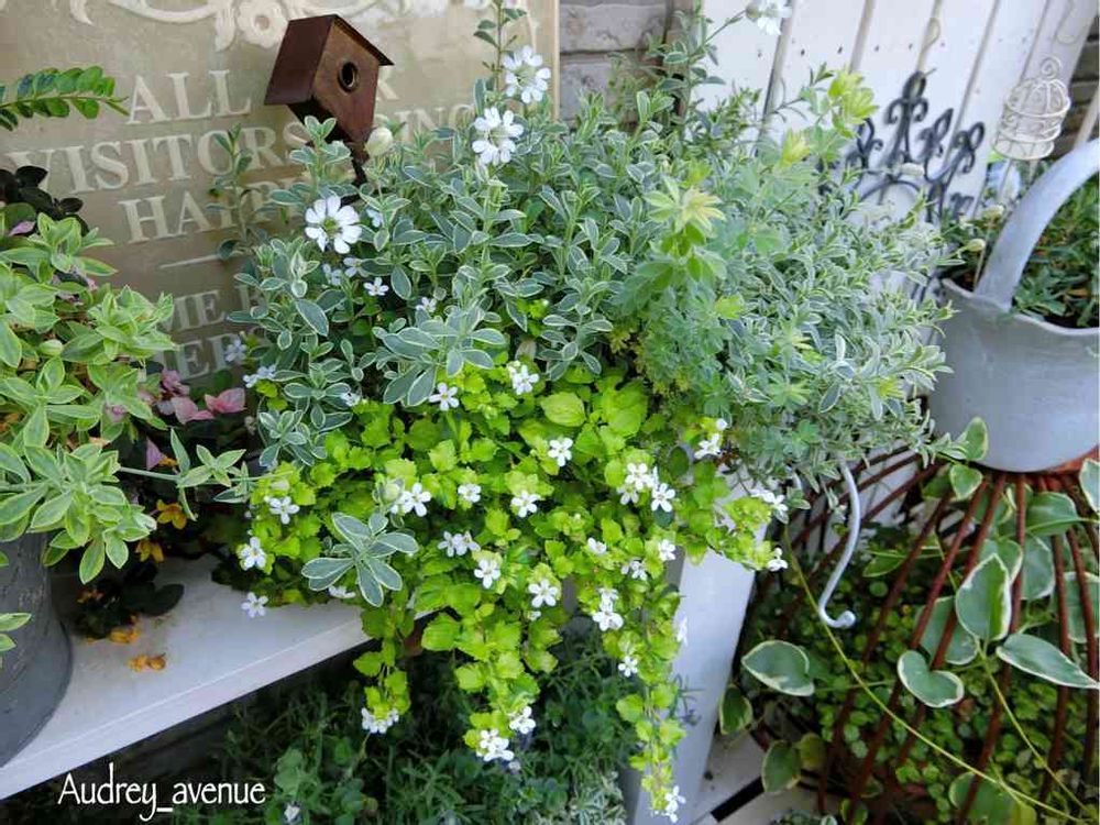 Audreyさんの小さな庭,ツルニチニチソウ,斑入りワイヤープランツの投稿画像