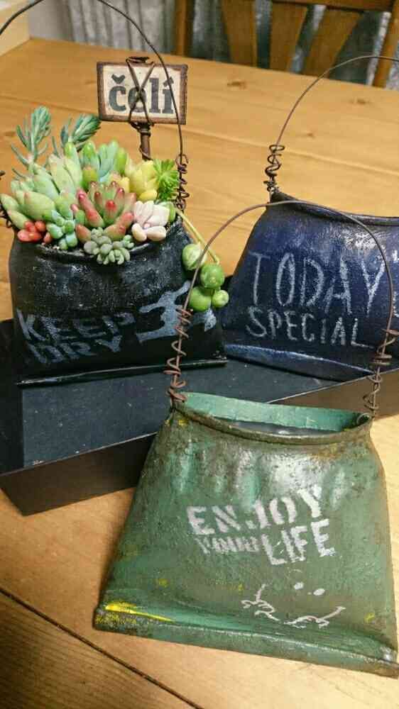 ikuraさんのリメ缶に早速寄せ植えしてみました🌿😄