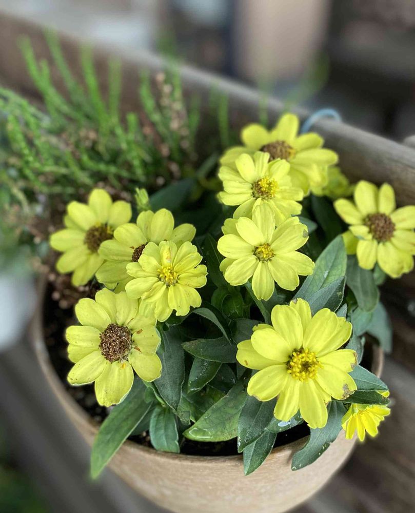 今は爽やかイエローのジニアがお迎えします🌼☘️😊