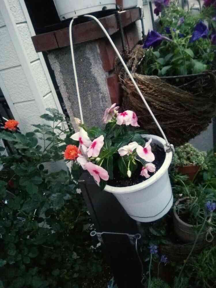 ニチニチ草、吊るされて、かわいいね。長咲きするので、楽しめるよね。