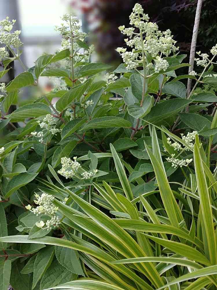 ピラミッドアジサイ(ダルマノリウツギ)の蕾とヤブランの新芽✨