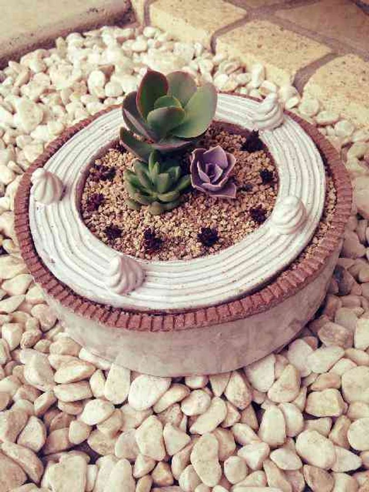 100均の多肉と駐車場の土嚢袋に群生してたセダム?を寄植え♪
