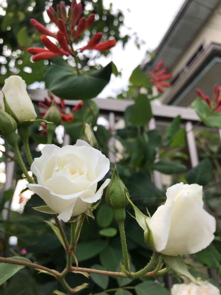 あっきーさんの小さな庭,ハニーサックル,バラ アイスバーグの投稿画像