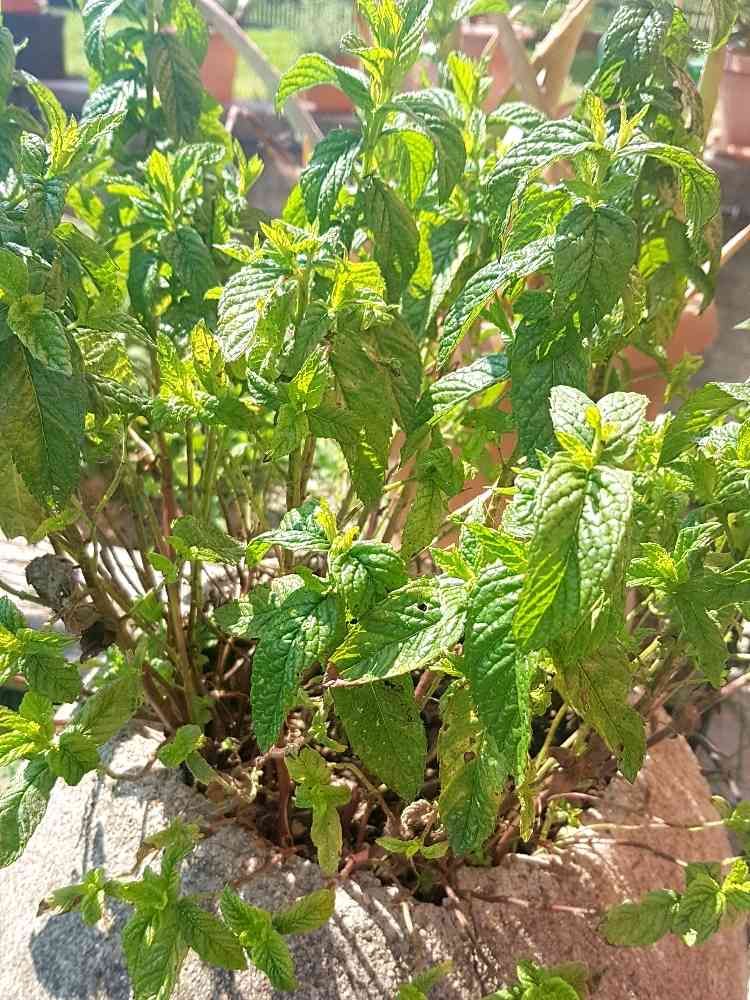 我が家のミントはお手入れ無しで毎年勝手に育ってくれています。こちらは最近太陽の日を浴びすぎてしまい葉っぱがかたくなって来てしまいました。とても良い香りで夏はレモンとミントをミックスしたデトックスドリンクに役立ってくれています。