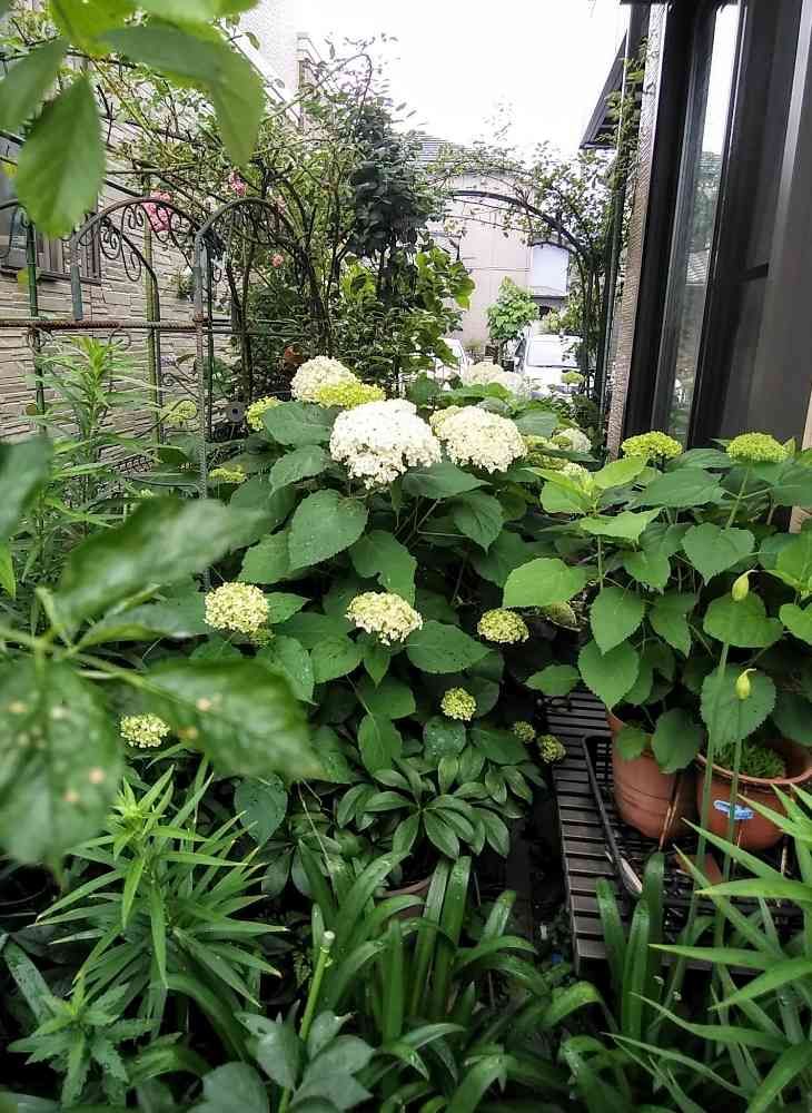アナベルの後ろは、台所の濡れ縁から、手を伸ばして。