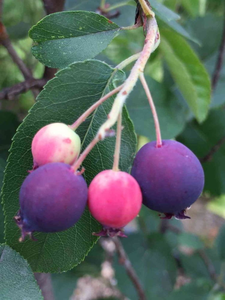 はい、今年初めての収穫前のジューンベリーです🍒色がとても可愛いかったです💜