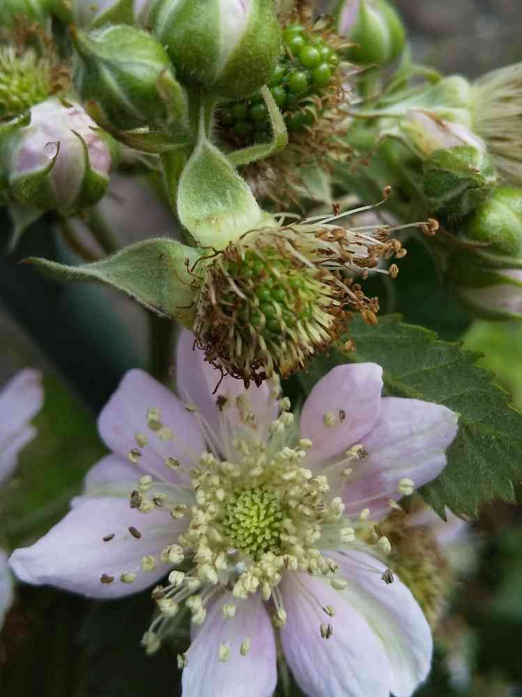 うちのブラックベリーの花は、もっと白いです。これはほんのりピンクですね。かわいい❣️実も、少し違うのでしょうか?