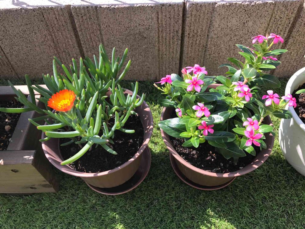 右は新しく仲間入りしたニチニチソウ夏花火。名前が可愛い🎆