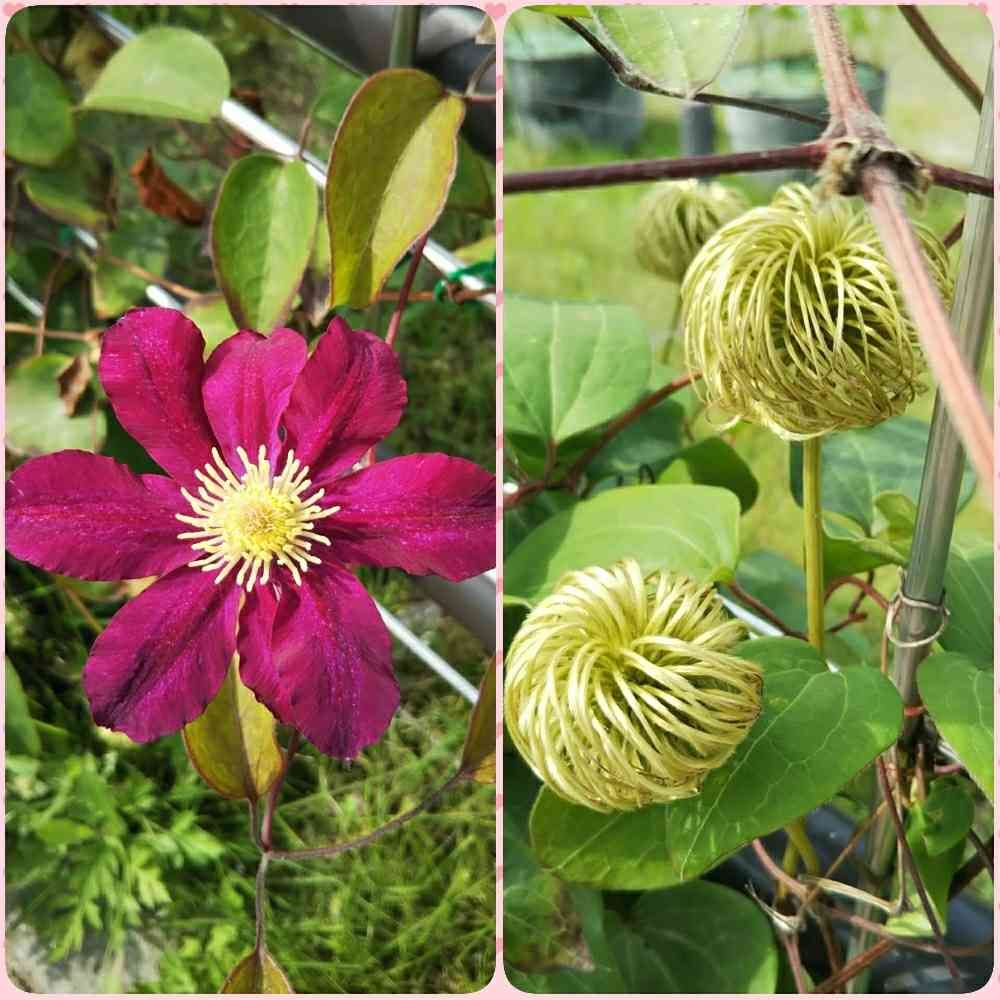 クレマチス《柿生》の色鮮やかな綺麗なお花と、花後の姿です✋