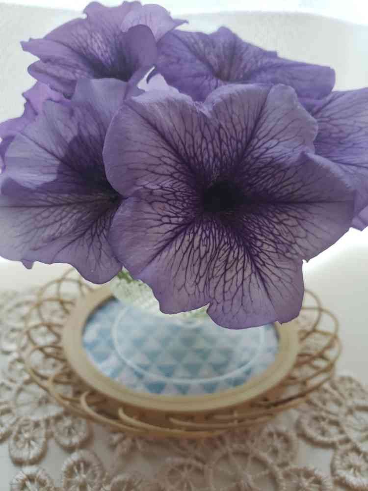 伸び伸びになったペチュニアを切り戻し✂️色違いで同じタイプのピンク系のペチュニアも育ててますが眺めてると花びらの筋が血管に見えてきます。