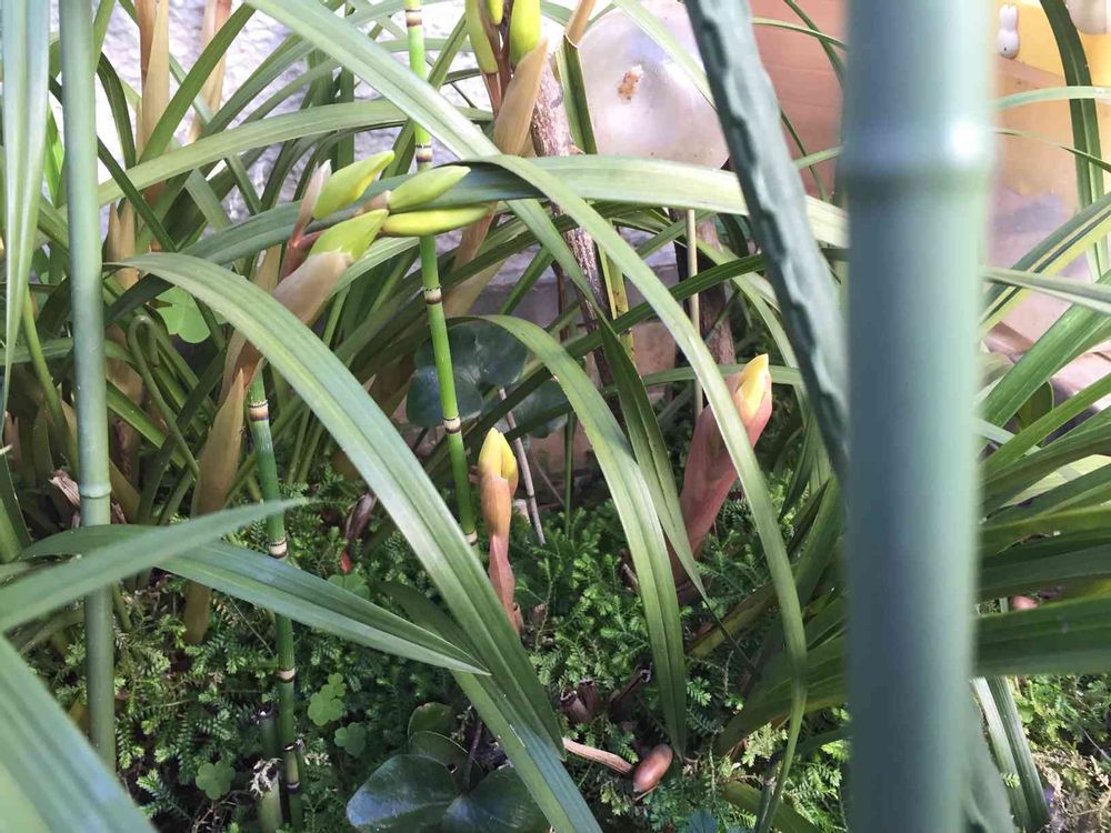 実家の庭にて伸びてきた和蘭の花芽。今年は暖冬で早い。