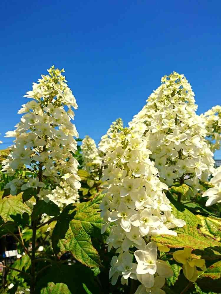 柏葉アジサイってみんな横向きに咲くのかと思ったら、真上に向かって咲くのも有るのですね🎶