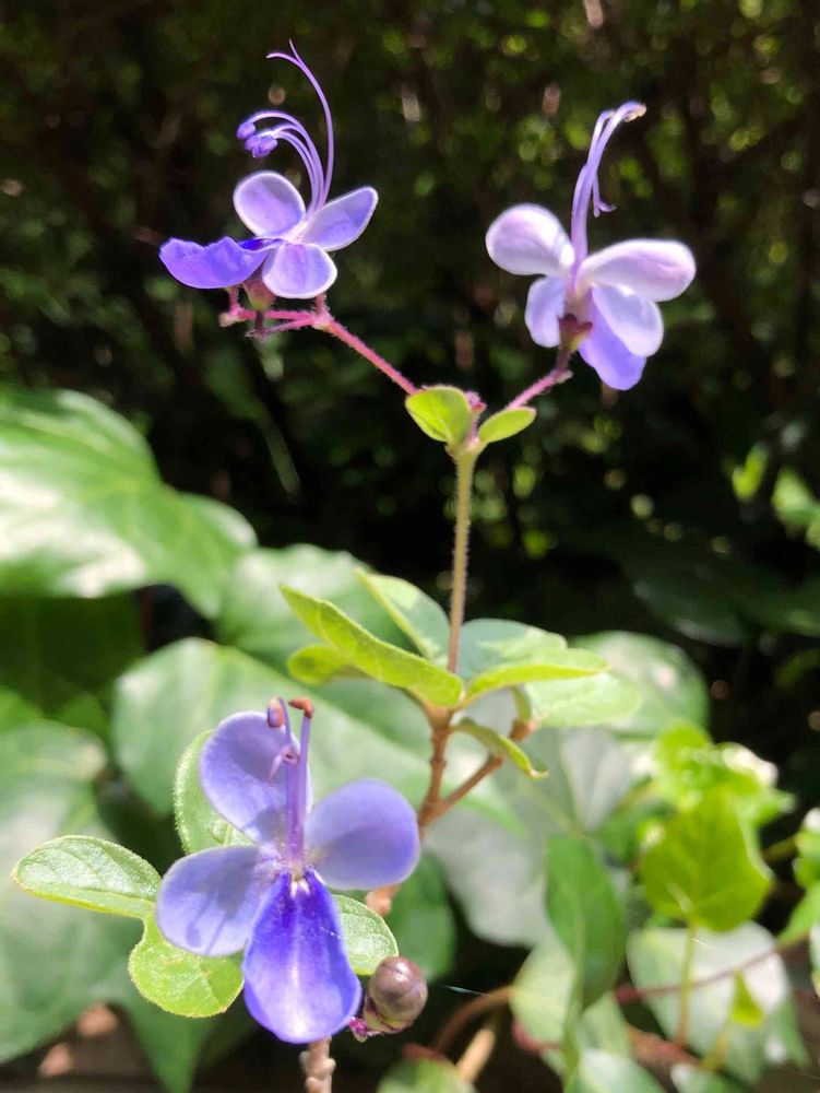 クラリンドウと言うと白い房状の蝶々が垂れ下がるクレロデンドロム・ウォリッキーのことを指すみたいです。このブルーウィングはその仲間の中で珍しくブルーの花を咲かせる種類だそうです。