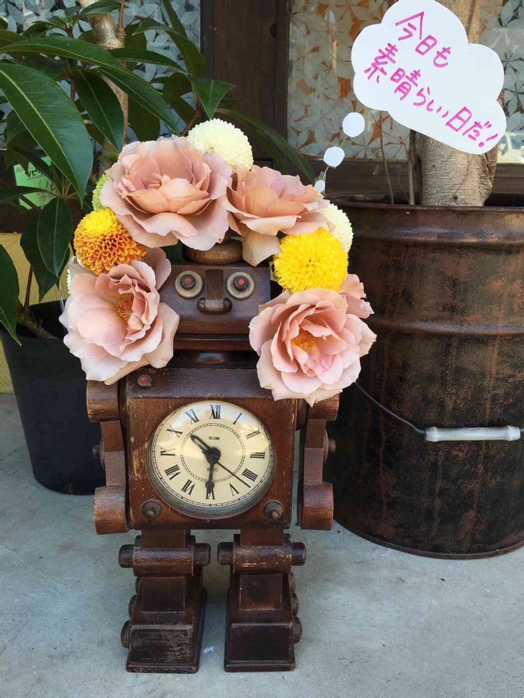 お花に囲まれて、ちょっと固まってるわよ🎵