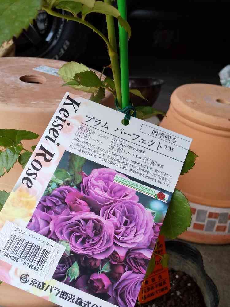 こちらも、皆様のお陰で我が家へお迎えしました‼️プラムパーフェクト新苗ですが、来年沢山咲きますように〰️💖お安くなってました➰😃