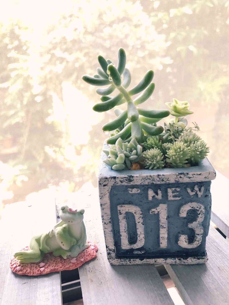 チョンパしてた乙女さんが根っこボーボーになったので、セダムちゃんたちと寄せ植えしてみました(*˘ᗜ˘*)