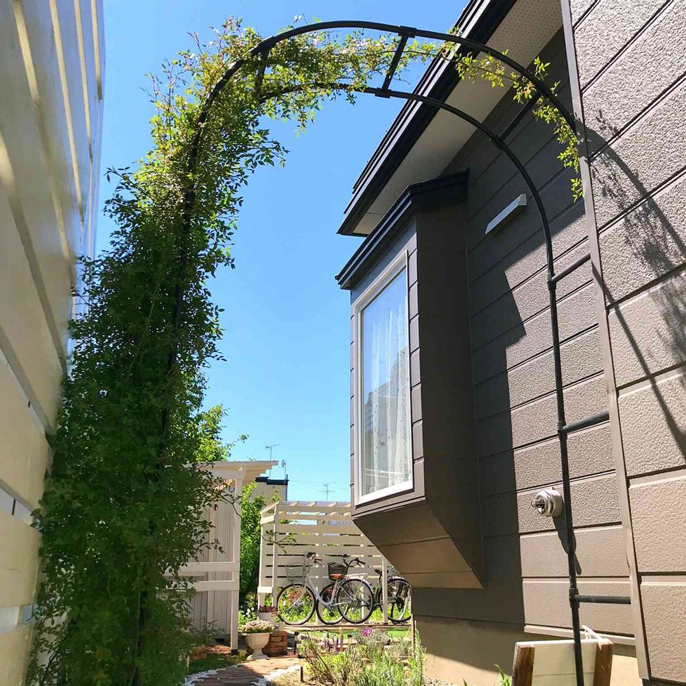 去年まではウッドフェンスには藁たせてたけど難しくって、アーチに変更。
