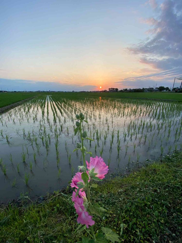 素敵な夕暮れですね😍💞ピンクのアオイの後ろ姿が、夕景色に溶け込んでとってもおしゃれなpic ですね❣️