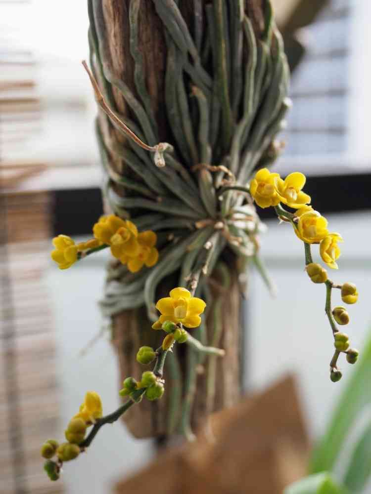 原産地では木に着生して生育しているそうなので、蘭にとっては植木鉢より自然な姿なのかもですね✨