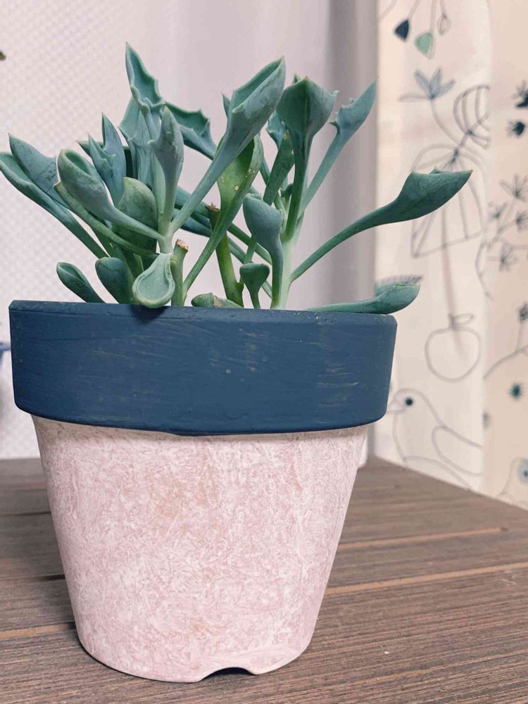 今回の鉢も自分でペイントした子だけど、ブルーとマサイさんのグリーンがよく合う