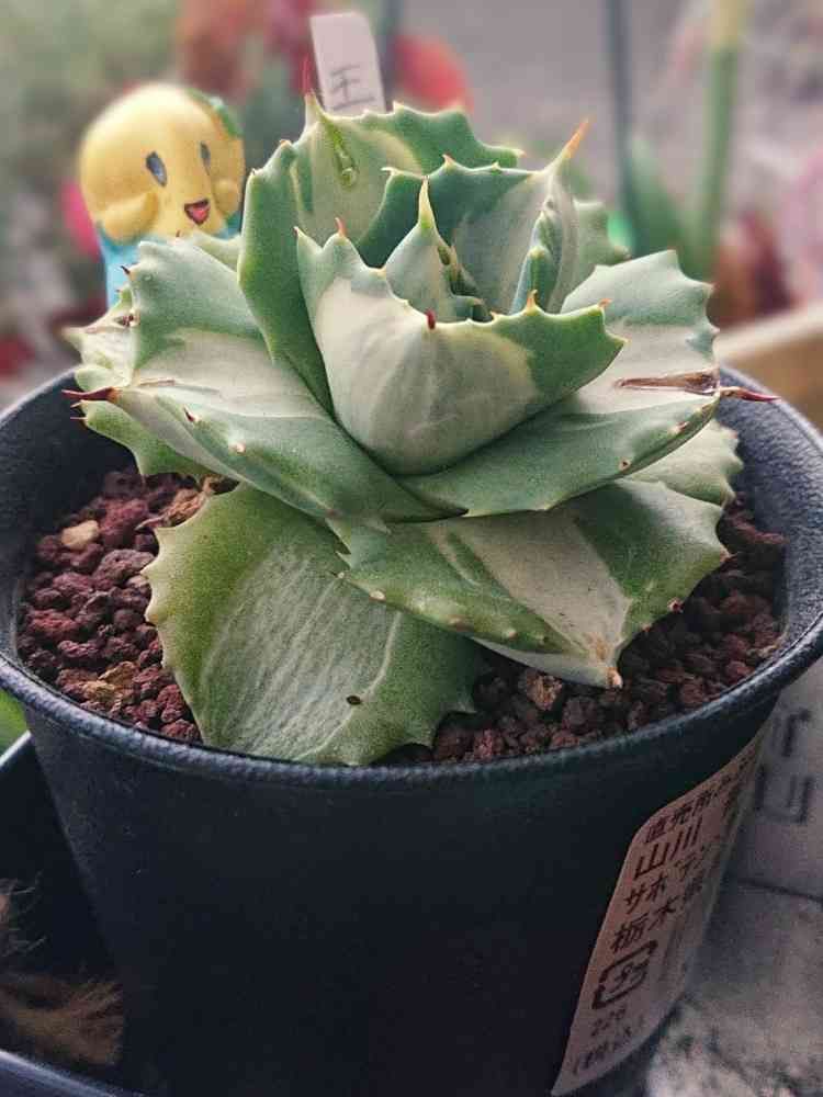 最近教えてもらった事なんですが、この王妃雷神錦の生産者が多肉界隈で有名な方が生産された個体だと初めて知りました(´Д`;)