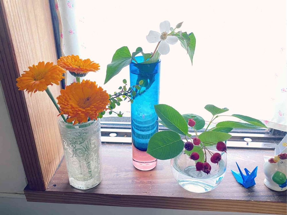 部屋,キンセンカ,ジューンベリーの実の投稿画像