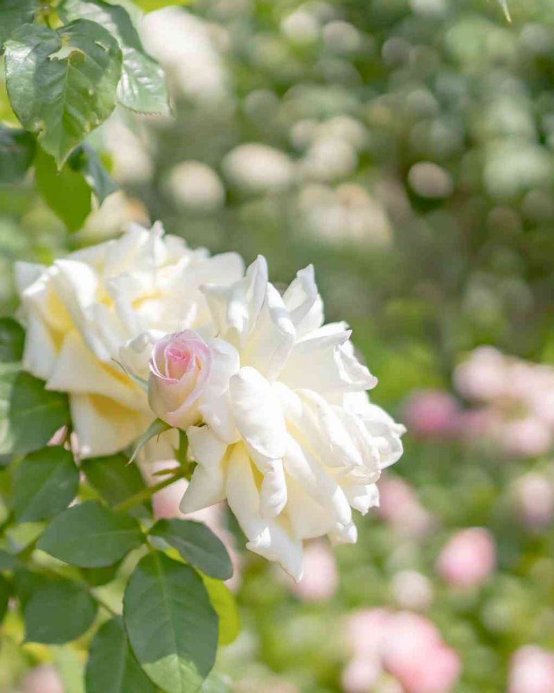 満開の白ばらに小さなつぼみ。