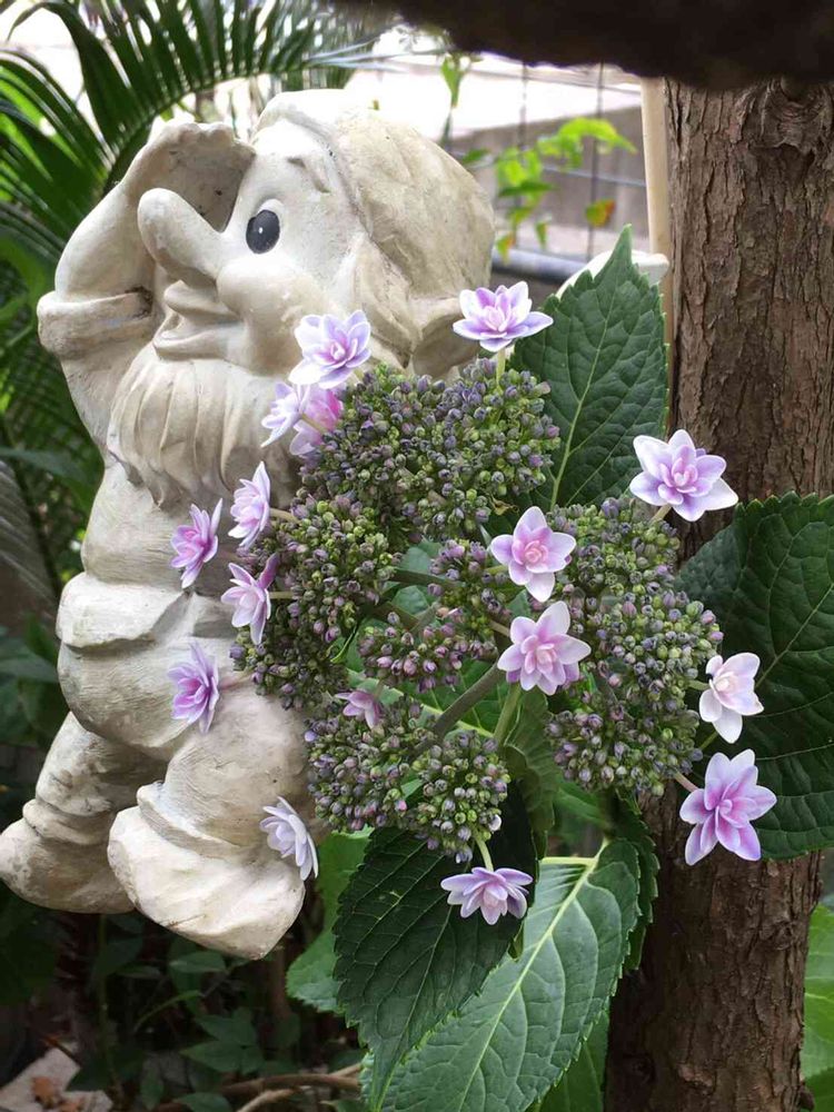 ヒイラギの木の枝にアジサイ♡のお顔支えて
