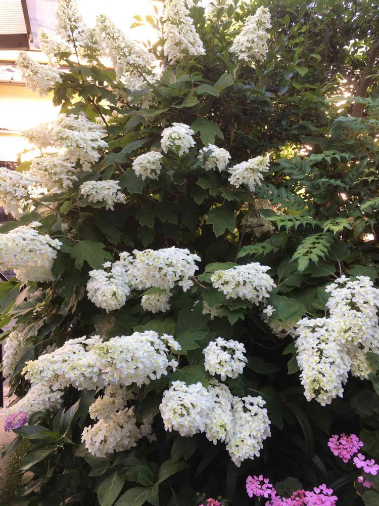我が家のカシワバアジサイが毎年いっぱい咲いてくれてます。手入れ不用です。