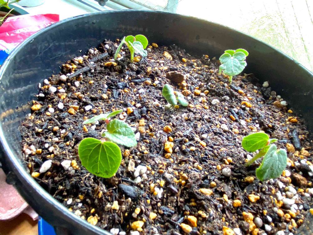 去年種取りしたのを蒔いたら!ちゃんと出てくれた🌱ヾ(*´ч ` *) エライエライ