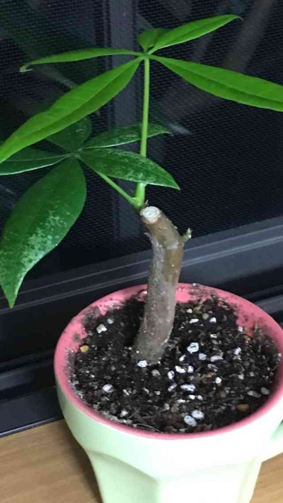 このパキラさんは、一度全体が枯れてしまいましたが、春を迎えて変わりなくお水をあげてたら新芽が出てきてこの様に成長してくれましたヾ(๑╹◡╹)ノ"