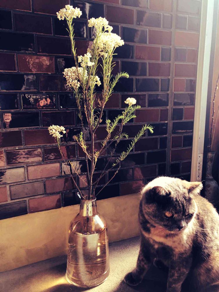お花も飾りたい!だけど、大先生が目を光らせている…でも飾りたい!と、諦めずに頑張っております笑笑 先日飾ったシチダンカの葉は、いつの間にかシースルーのようになっていました🤷♀️