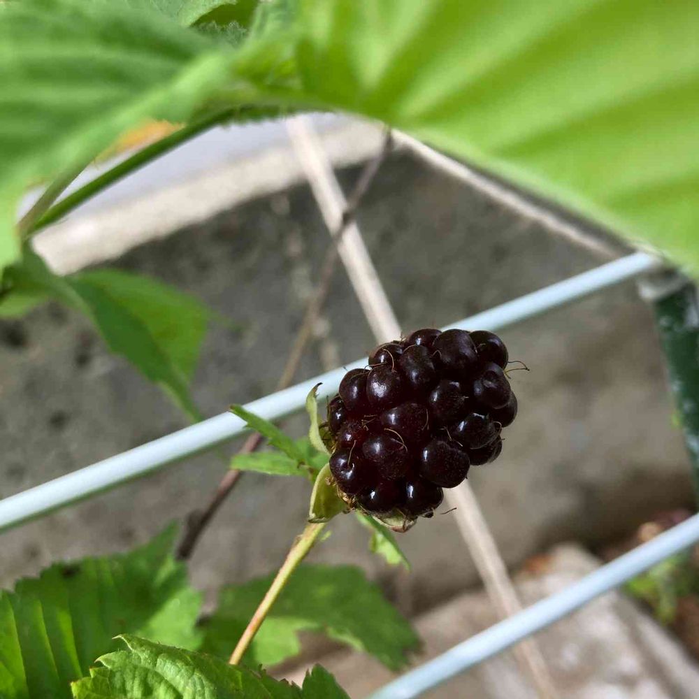 今年植えたので実が10個ほどしか付きませんでした。初ブラックベリーすっぱくて美味しかったです♪