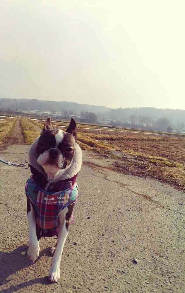 ゴマさん、おはよーございます! 小梅、何にも無い田んぼの中の一本道勇敢に走るハズがクルッと戻り、もう帰りたいって😅😅 暖かい寒の入りでしたね🍀