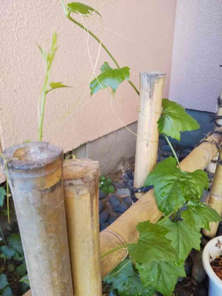 和風な玄関脇からヘチマ🌿