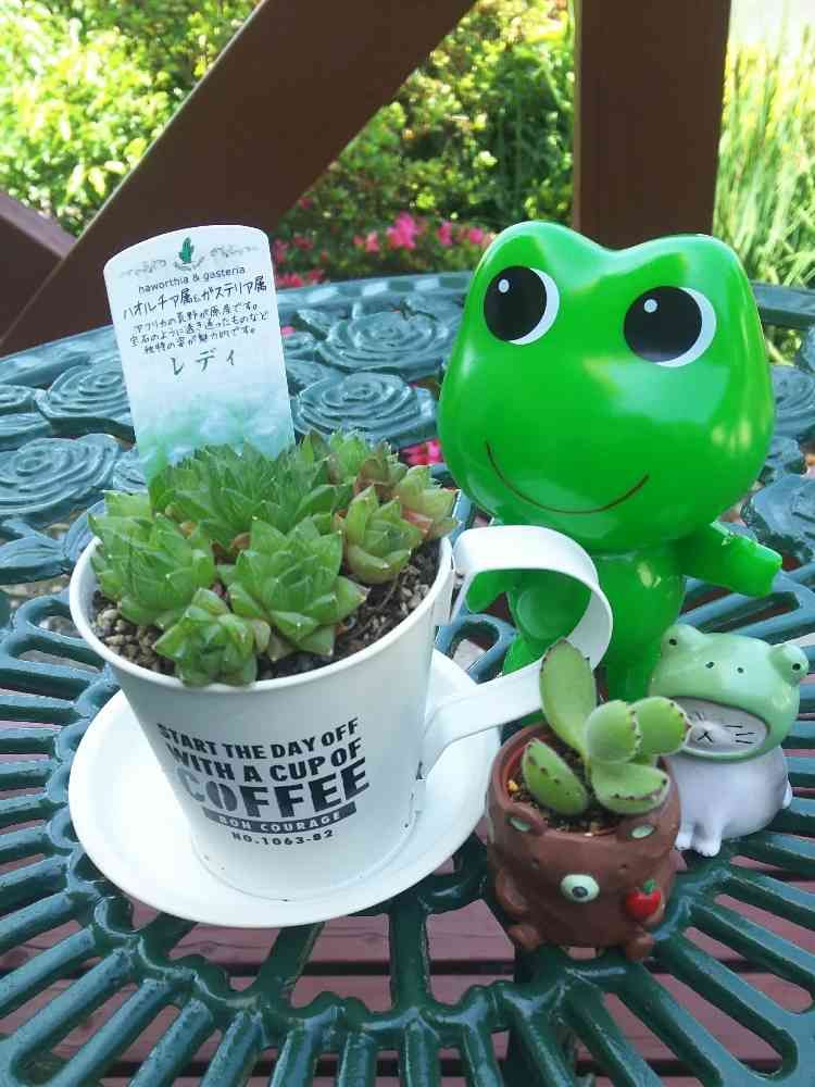 カエル🐸さん達と、多肉植物とのコラボレーション良いですね〜