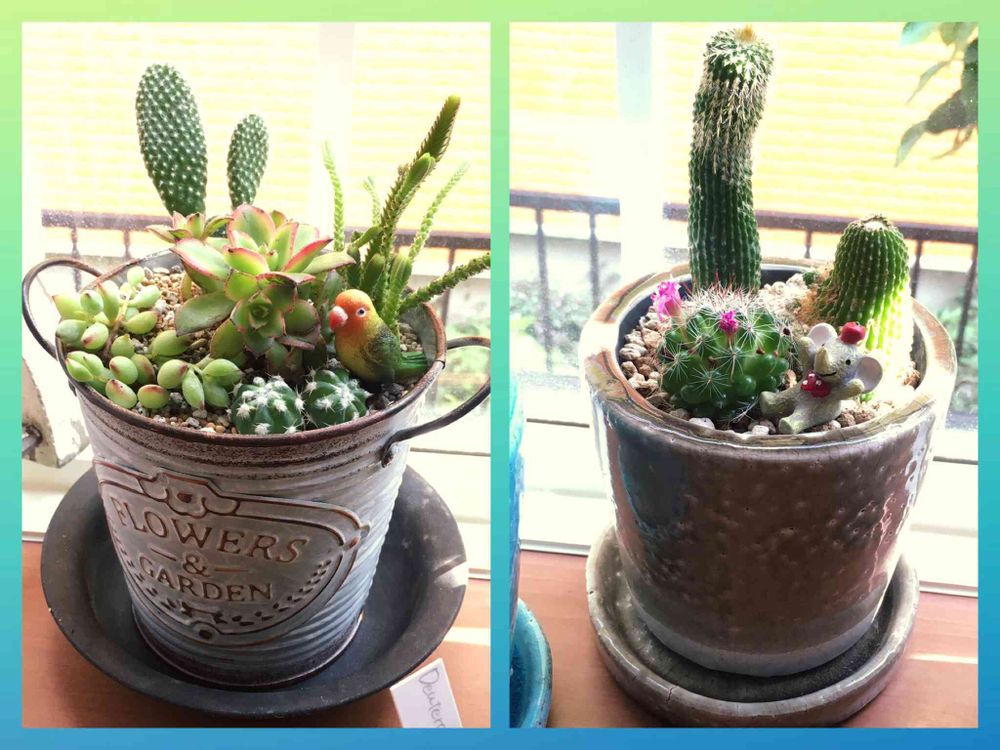 サボテン多肉の寄せ植えにフィギュア飾ってみた🦜