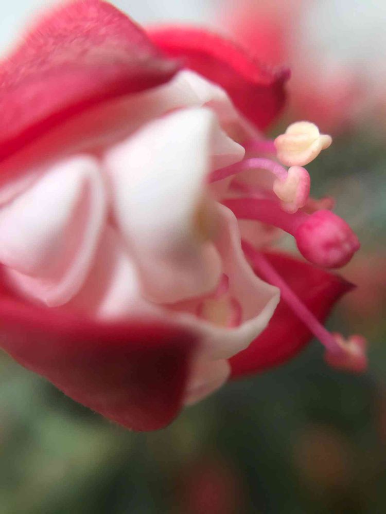 フクシア^_^あらためて育て方を"持ってる植物"に登録して調べたら、葉水は夕方に〜とのこと😰