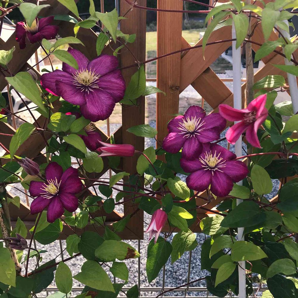3種類のクレマチスがいるので咲き乱れさせたいのです😆上手に誘引できたら良いのですがね〜〜