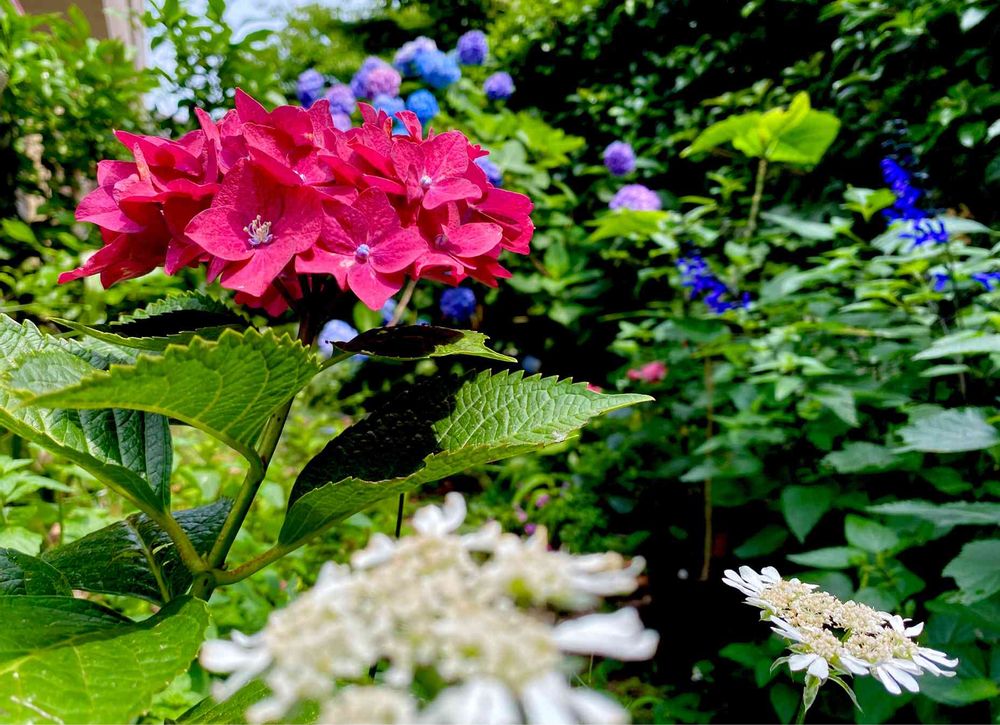 こんなに鮮やかな紅色のアジサイがあるんですね💖