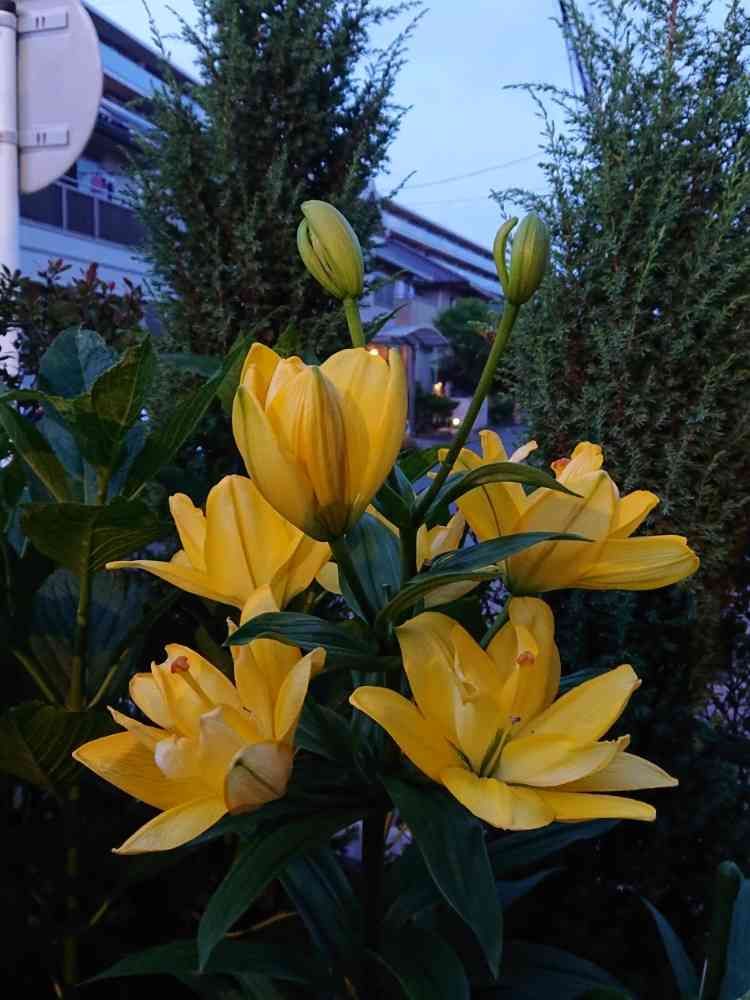 スカシユリ:イエローベリーさん。前投稿のテッポウユリさんとは随分違う佇まい。元気一杯な姿、上を向いて咲くんですね❗。