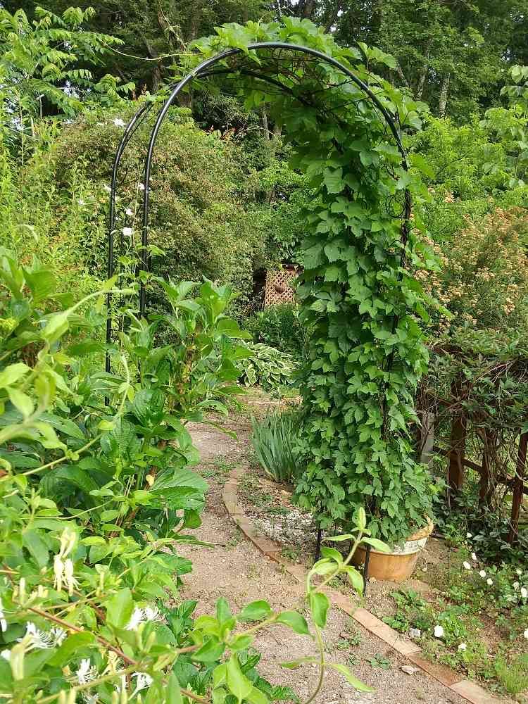2年前、アーチの足元の植木鉢に植えたホップが今年はモリモリしてきました🌿🌿🌿👀