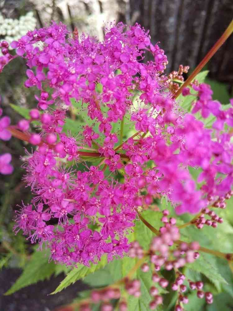 小花の弾けた蕊がかわいくて昨年、シモツケ、京鹿の子地植えしました😄