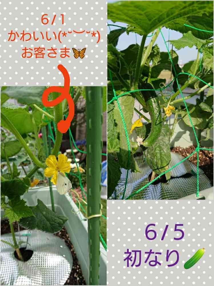 🥒さん、かわいい🦋来訪で、がぜん、やる気マンマン💪
