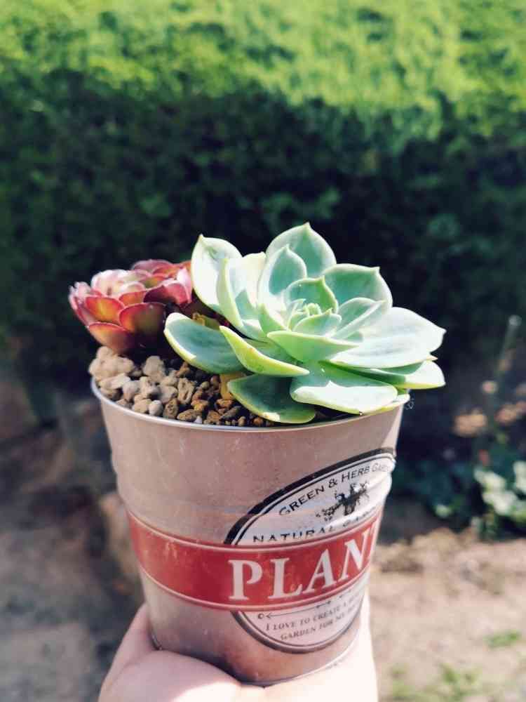缶の色と多肉植物が