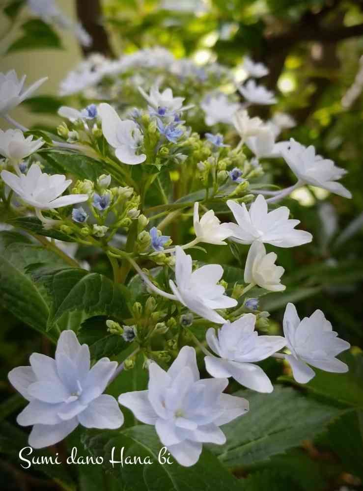 あ、いえ、柏葉紫陽花はピュアホワイトです💦 最初どちらもホワイトだったけど、隅田の花火がブルーになって、庭がホワイトとブルーの2色になってくれて、嬉しいなと思って。