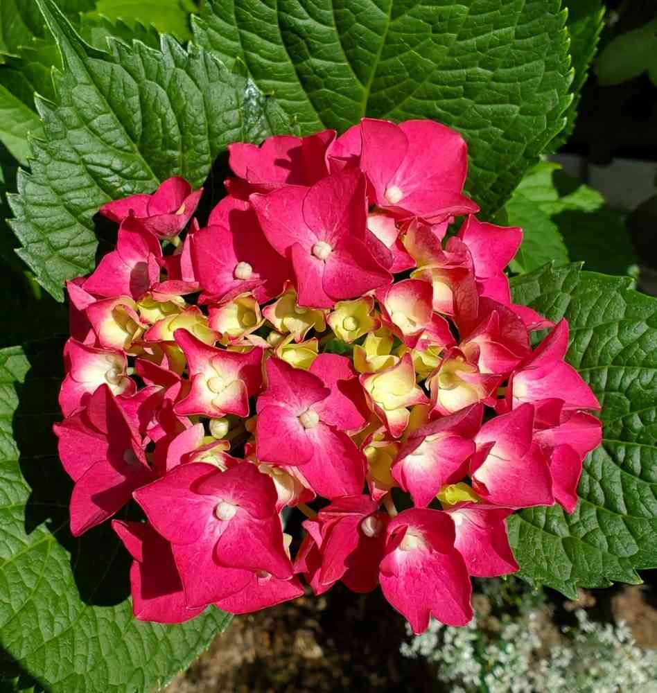 以前、鮮やかな赤い紫陽花をGSに投稿された方に、「ピンクの紫陽花用のアルカリ性肥料を多めにあげたら赤くなった」って聞いて(すみません、どなたか忘れちゃいましたが)、私も春頃に多めにアルカリ性肥料をあげたらホントに濃い赤になりました🎵