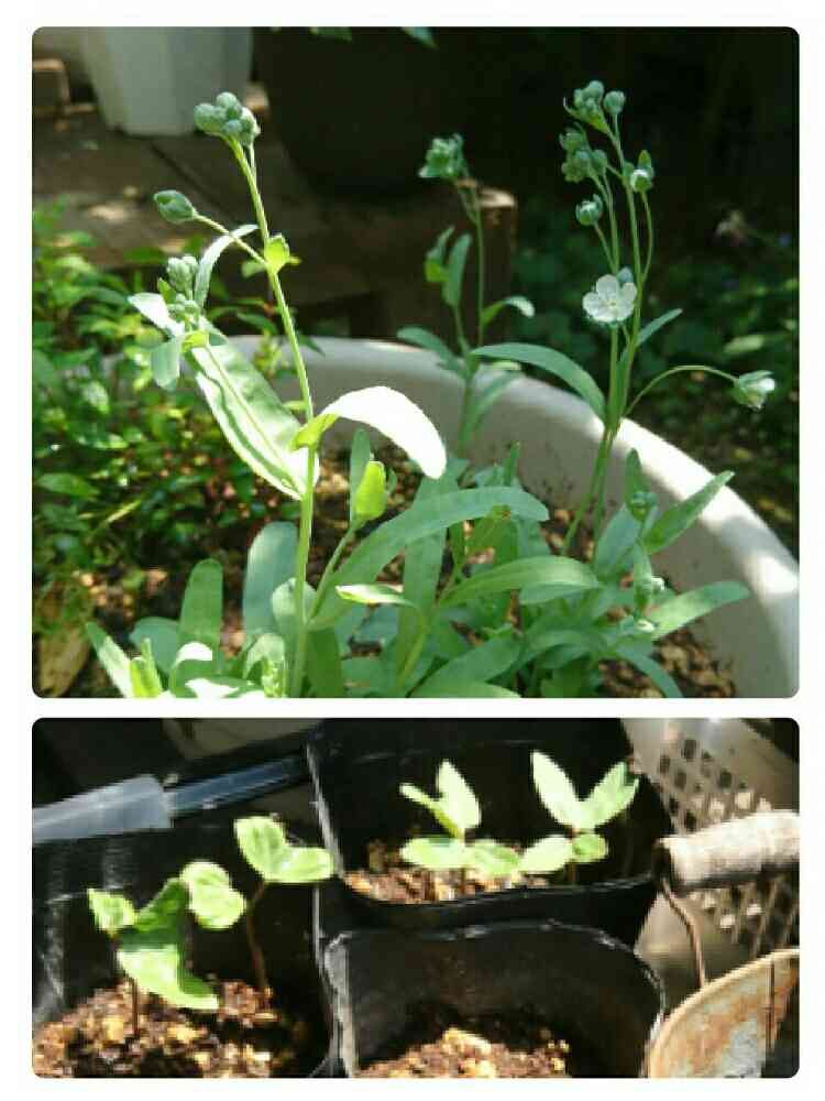 のえるママから頂いた、オンファロデスの種から育てた苗が可愛い❤お花をつけ始めました❗