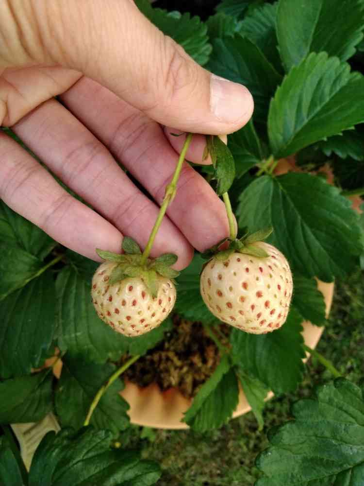 貰った白イチゴの苗に実が付いてました🍓