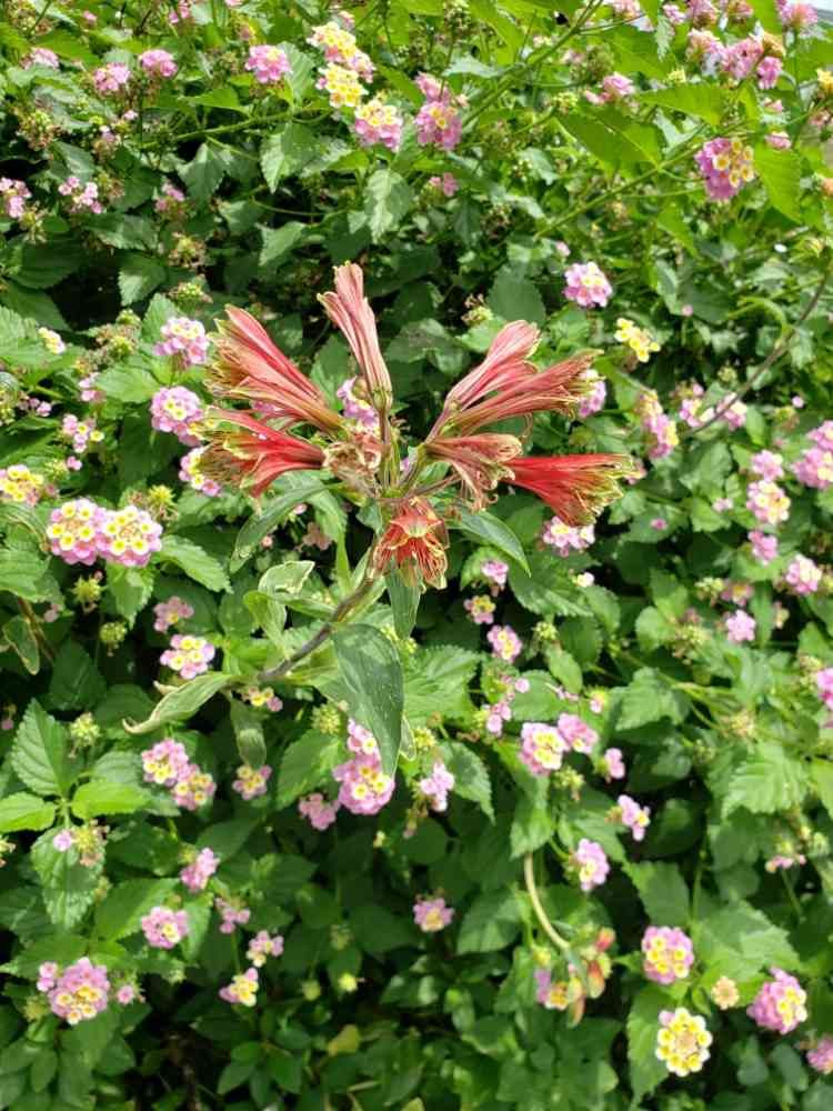 ランタナがかわいく咲いています。が、その中に知らない花が。